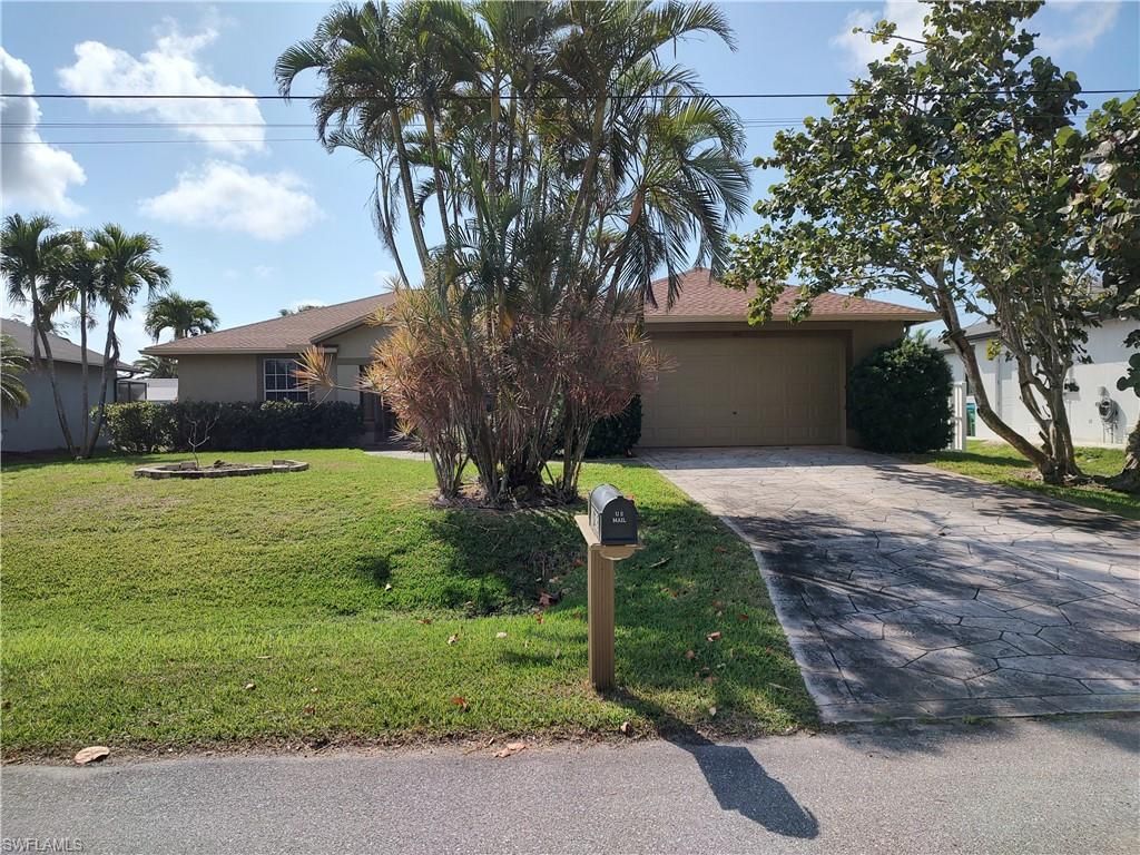 An outstanding opportunity awaits the next owner of this 2003, 3 Bedroom and 2 Bath home with over 1,700 sq.ft. of living space! This great home is located in one of the most desirable areas of SW Cape Coral just off of Surfside Blvd. and near the end of a quiet cul-de-sac with mangroves as your neighbors across the street! This great home features neutral tile through out the living room and the kitchen, crown molding, and features a convenient kitchen nook and an attractive black appliance package!! The master bedroom also has sliders to the lanai, his and her sinks in the bath and a roomy shower with seat! This home is set up nicely to add a pool with a huge lanai under truss, pool bath and rear privacy fence! Water/sewer in and paid, new dimensional shingle roof in 2023, AC new in 2019, selling furnished, and rear Southern exposure too! This is a great opportunity for the first time home buyer or for a vacation rental property!